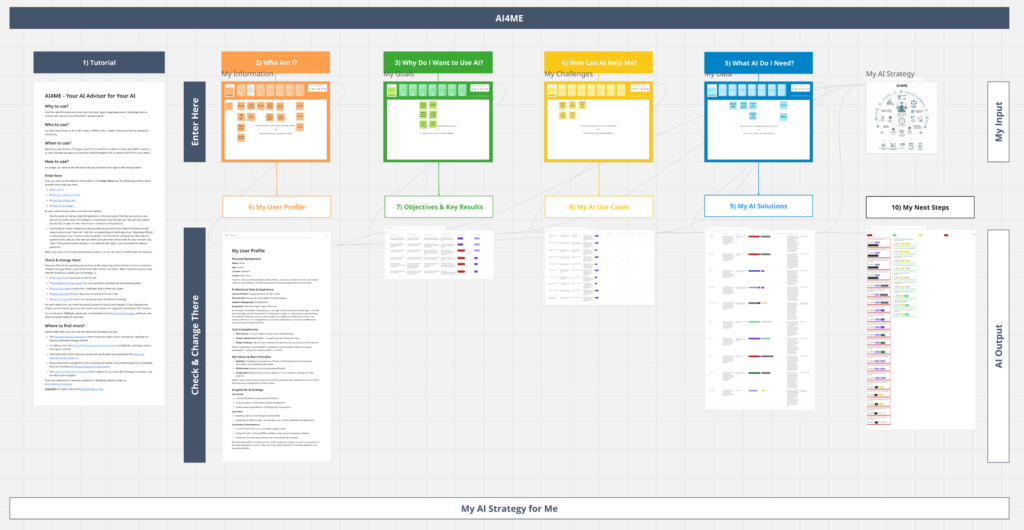 To help people collaborate more effectively, we’ve developed multiple Miro tools and templates for our Data & AI Business Design method, some of which we’ve made freely available on Miroverse. To integrate Miro AI as team player, we are currently reworking our Miroverse templates and expanding them to include AI Actions, AI Flows, and AI Sidekicks.